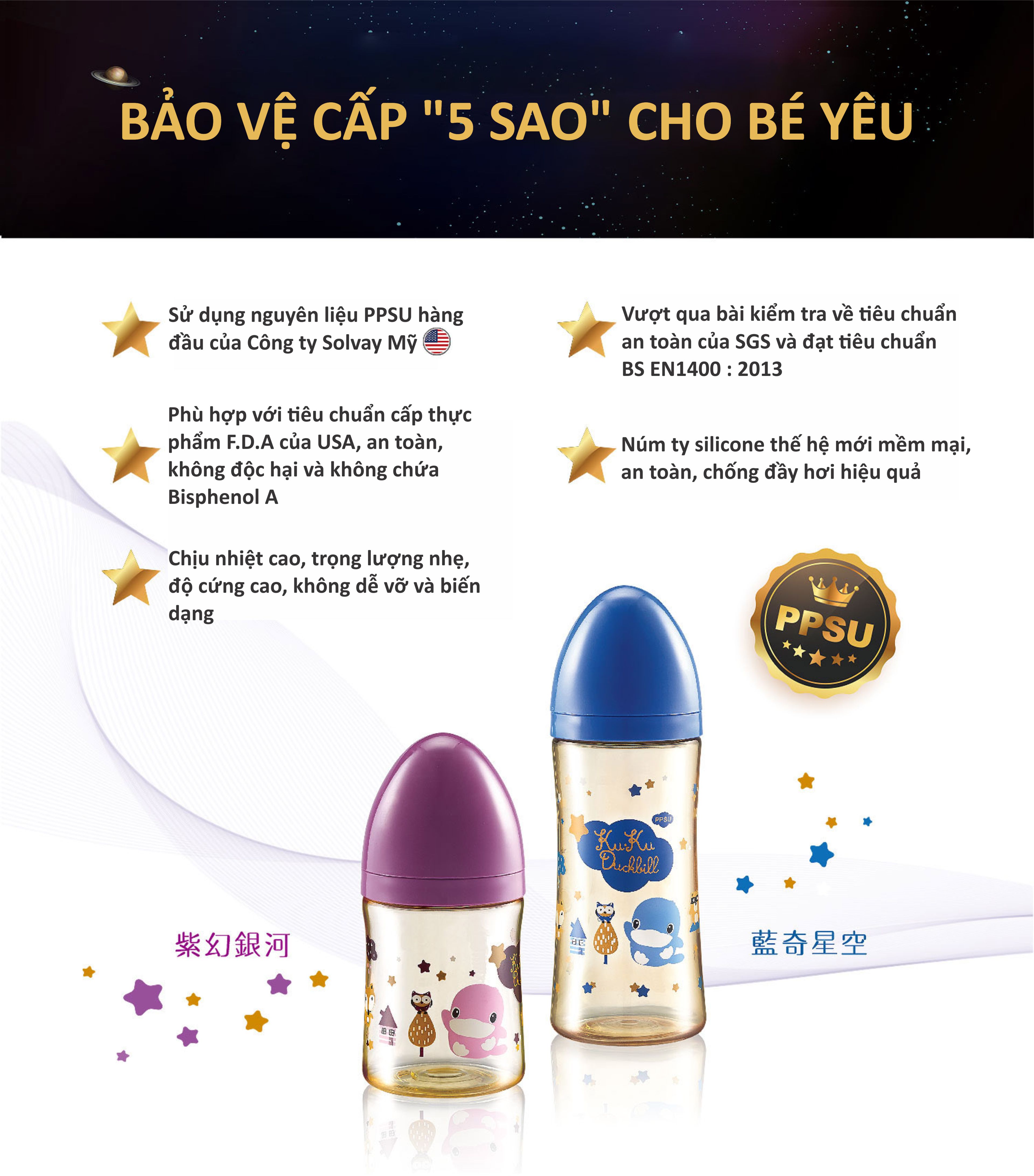 BÌNH SỮA CỔ RỘNG BẰNG NHỰA PPSU KUKU KU5856 - 160ML