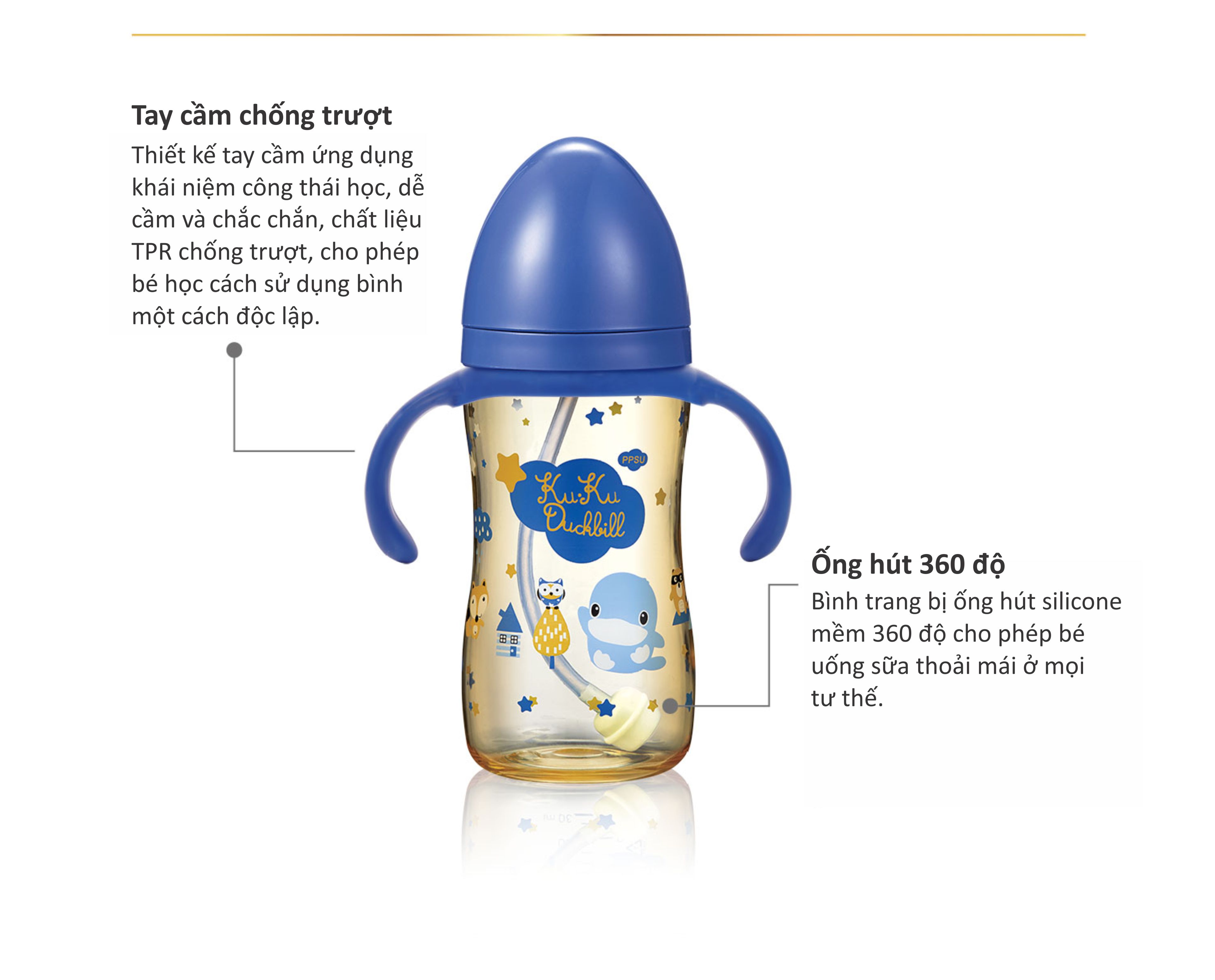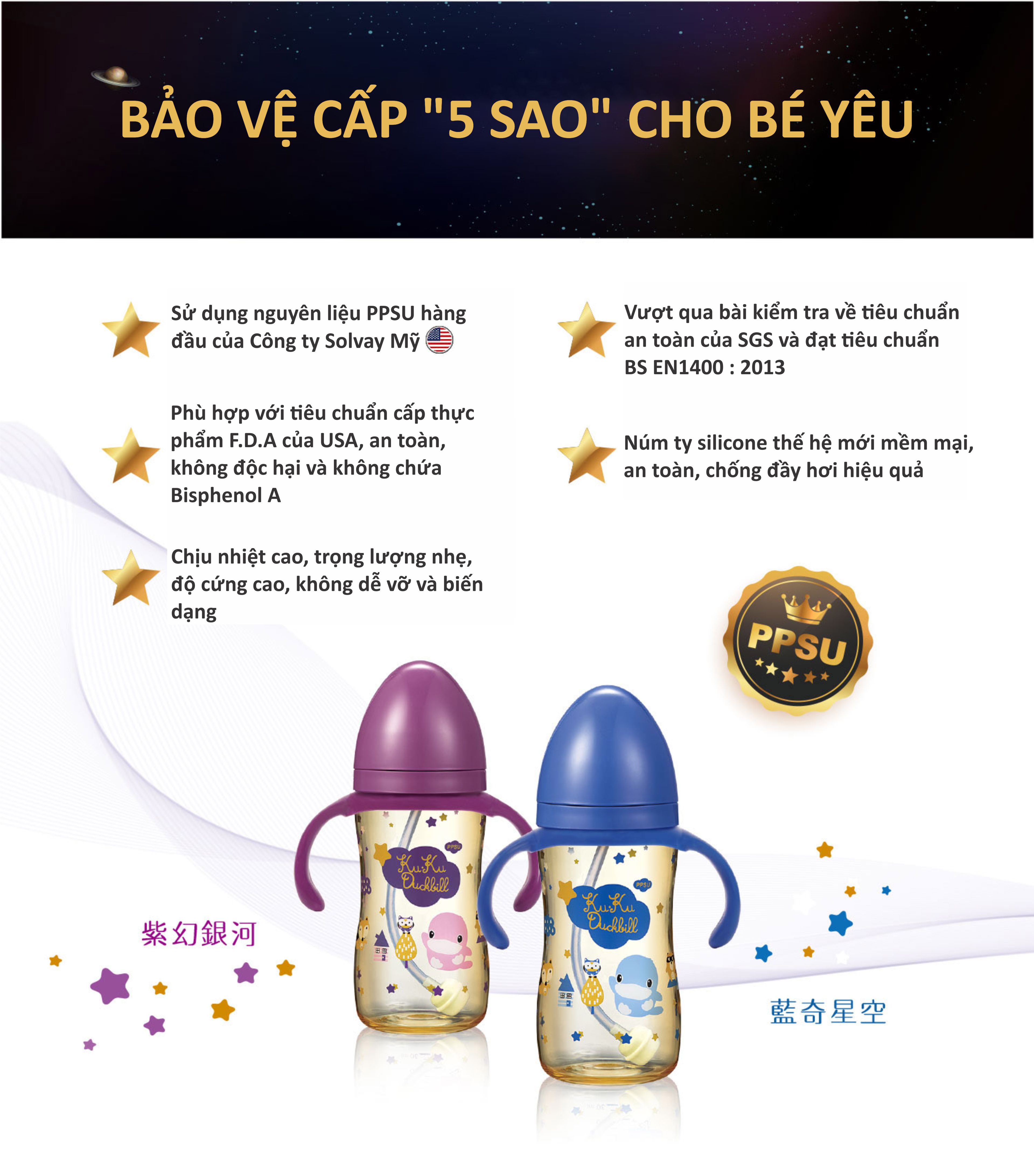 BÌNH SỮA CỔ RỘNG NHỰA PPSU CÓ TAY CẦM KUKU KU5867 - 330ML