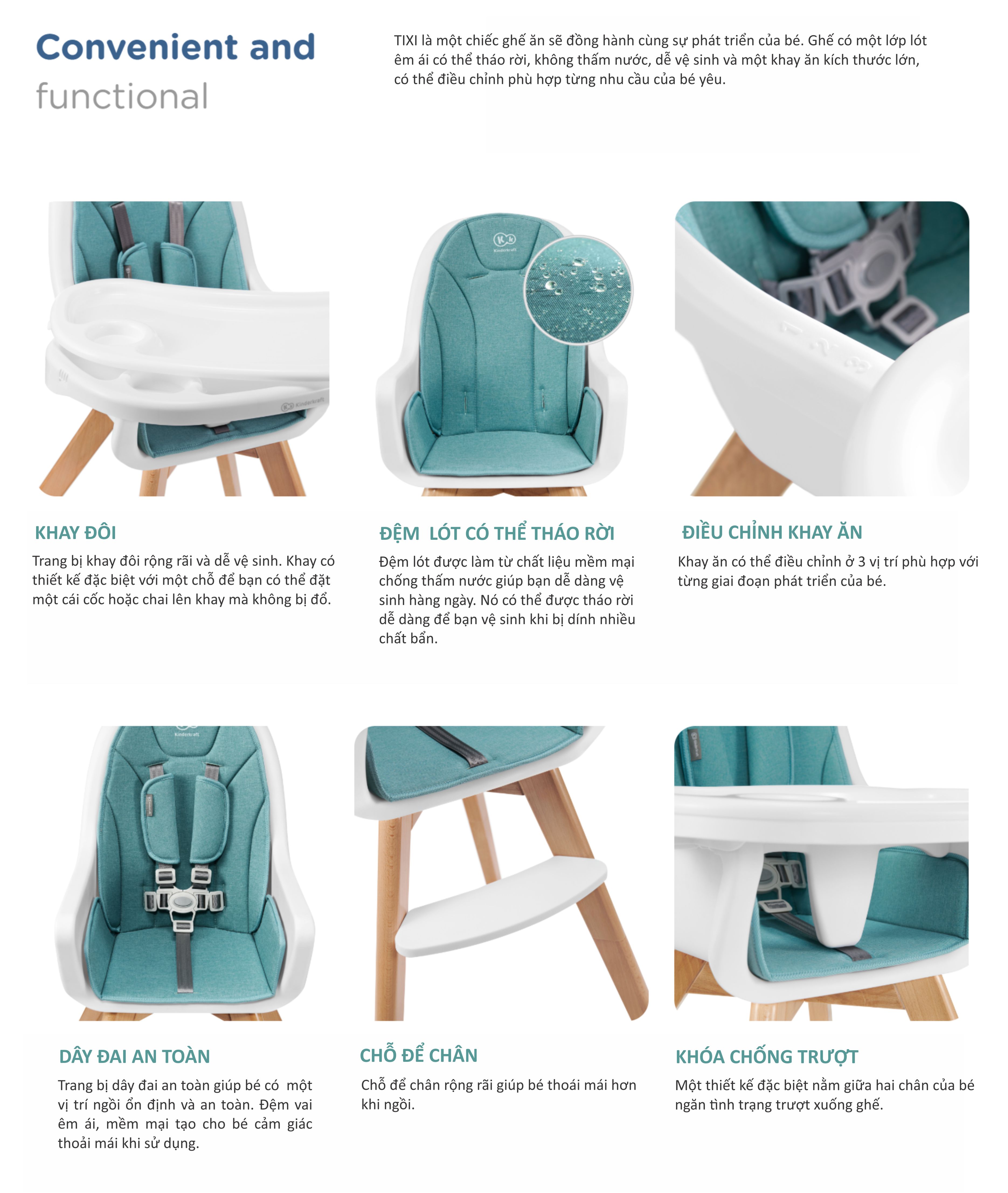 Ghế ăn Kinderkraft Tixi - Màu ghi