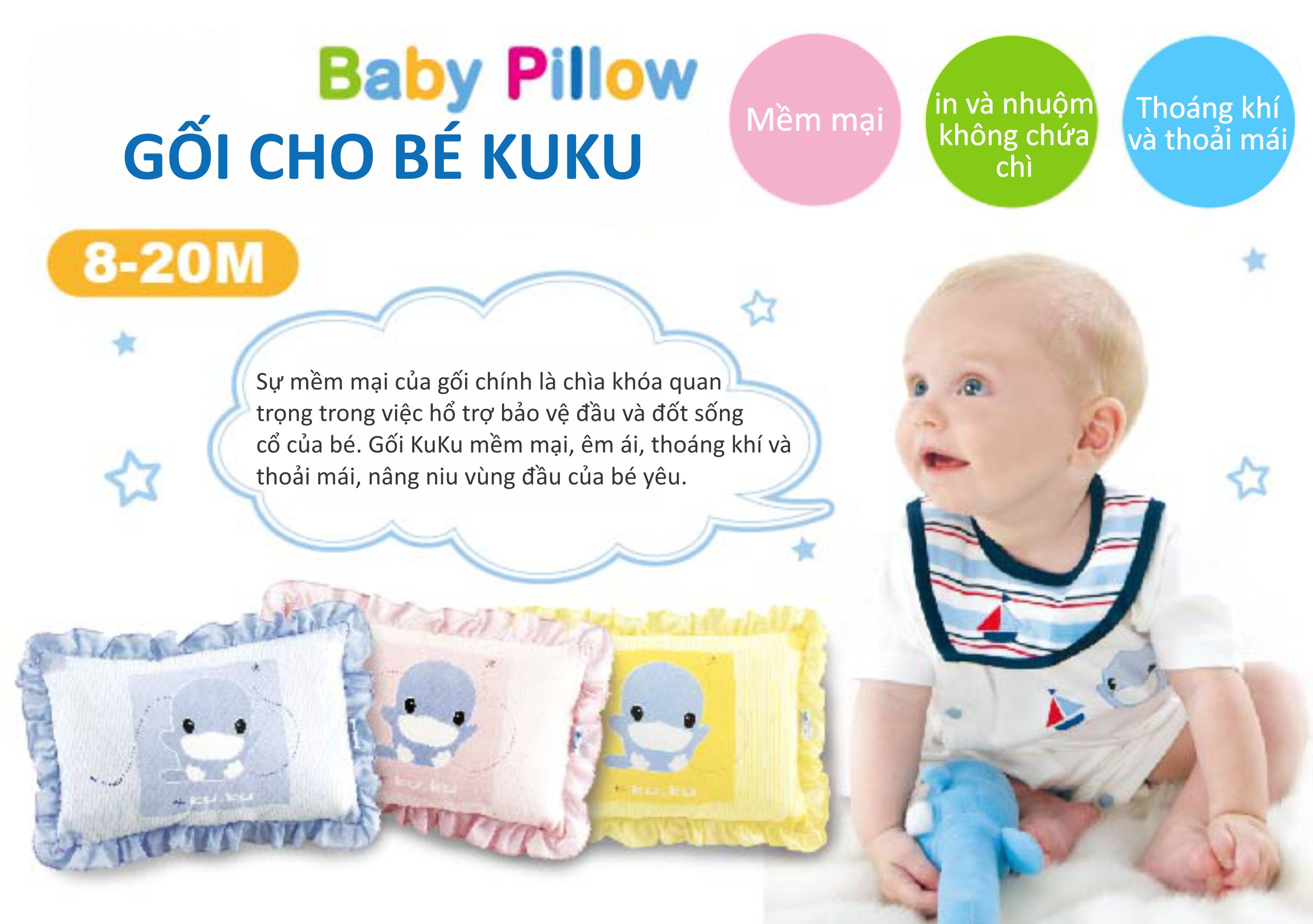 GỐI CHO BÉ KUKU KU2002 - SIZE 30*40cm