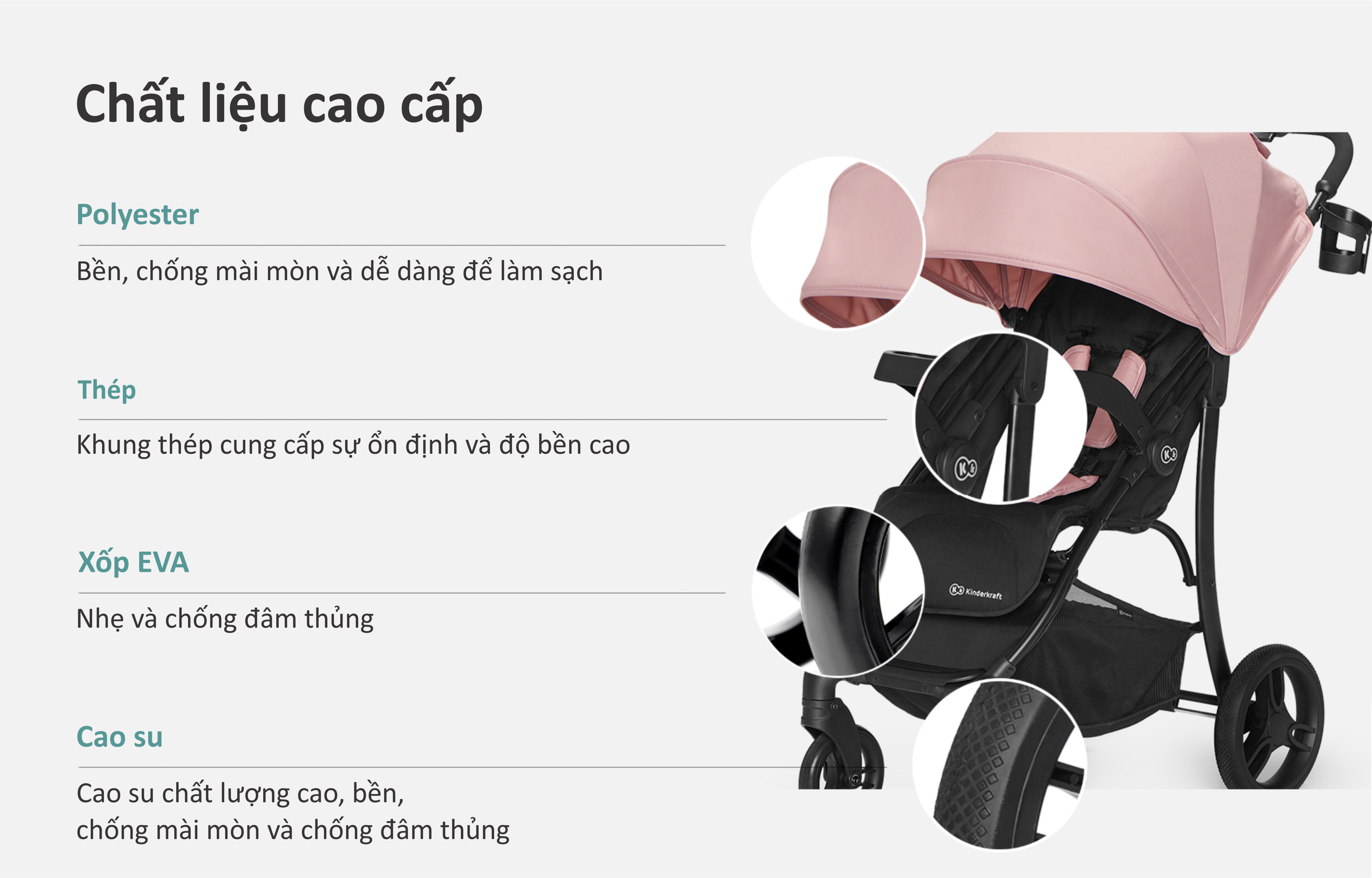 | Chất liệu: | Thép, vải polyester, xốp EVA, cao su |